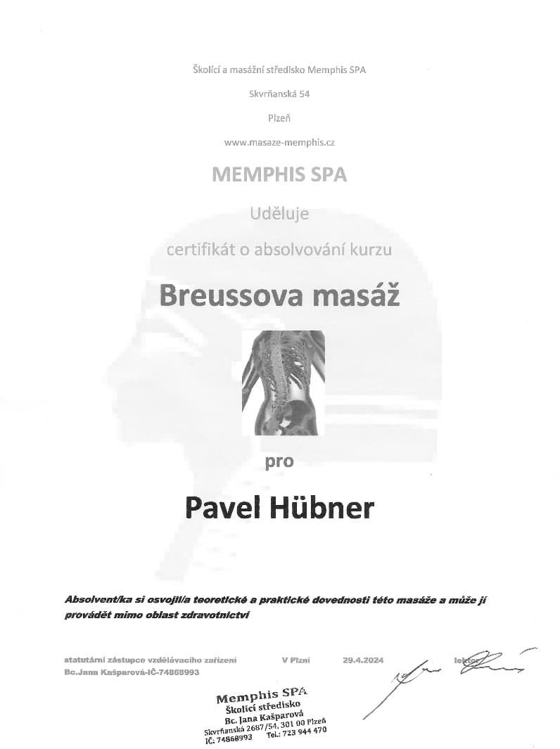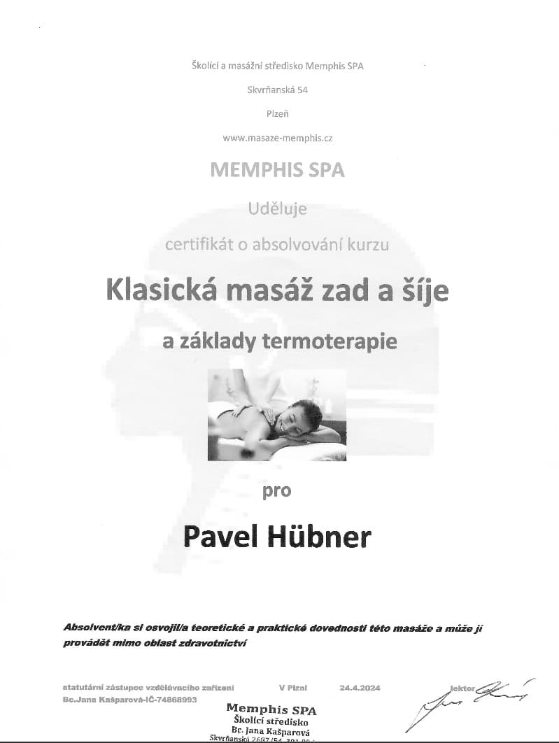 Jmenuji se Pavel Hübner a jsem masér, který se s láskou k tomuto řemeslu věnuje pečlivě každému klientovi. Mé služby zahrnují různé typy masáží, které vám přinesou úlevu od stresu a fyzických potíží.